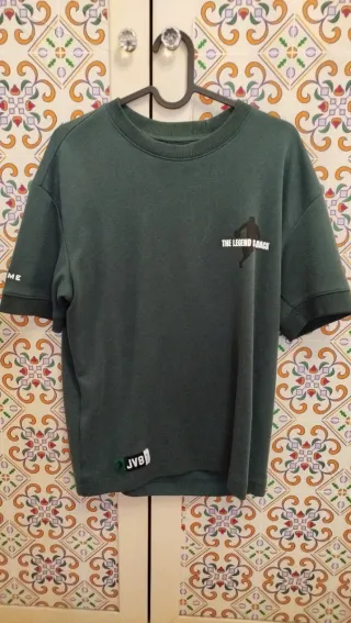 Camiseta de manga corta de color verde oliva. Nueva a estrenar, recomiendo lavar la prenda, posible olor a cerrado.
