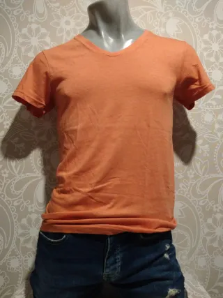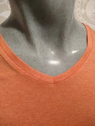 Camiseta de manga corta para hombre con cuello en V marca Pull&Bear en color salmón. - Tejido suave y ligero. - Diseño liso. Talla S. Medidas: 45 cm de axila a axila. 69 cm de largo.