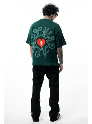 Camiseta de manga corta con un diseño llamativo. - Logo de corazón rojo con las iniciales 'RC' bordado en el pecho. - Corte holgado y moderno. SOLO ME QUEDA LA BLANCA Y LAS DOS NEGRAS XL LAS 3 50€ CADA UNA