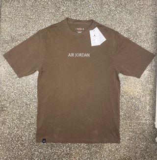Camiseta de manga corta con el logo de Air Jordan. - Color marrón/beige. - Diseño minimalista con el texto 'AIR JORDAN' en el pecho. - Pequeño logo de Jordan en la parte inferior izquierda.