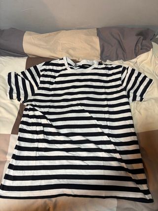 Camiseta de manga corta con un diseño clásico de rayas horizontales. - Diseño de rayas en blanco y negro. - Cuello redondo. - Marca Zara Se aceptan envíos y venta en mano (Barcelona ciudad)