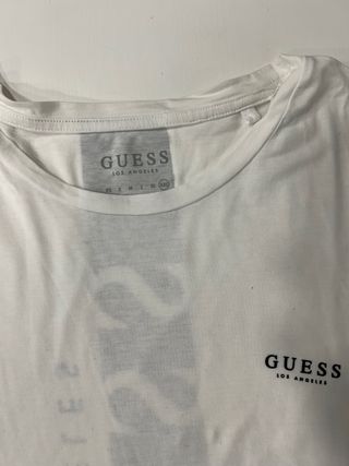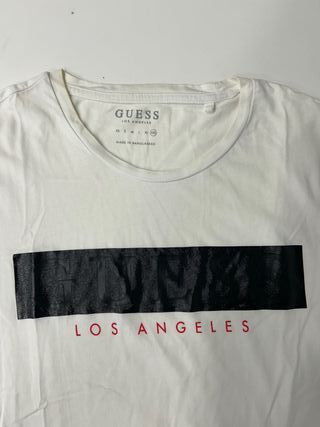 Camiseta de manga corta de la marca Guess. - Diseño frontal con banda negra y texto LOS ANGELES en rojo. Tall XXL pero equivale a una L - Cuello redondo.