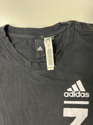 Camiseta deportiva Adidas con un diseño moderno y llamativo. - Mangas cortas. - Detalle de franjas negras en las mangas. - Banda horizontal negra en el torso. - Logo de Adidas bordado en el pecho.