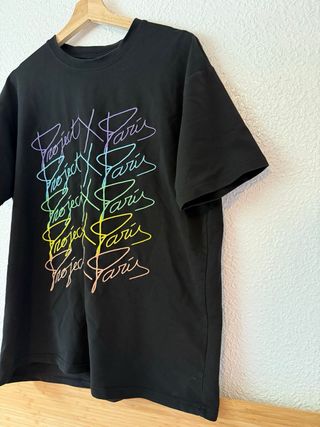 Camiseta negra con estampado de letras. - Diseño de letras Project X Paris en varias filas. - Estampado con efecto degradado de colores.