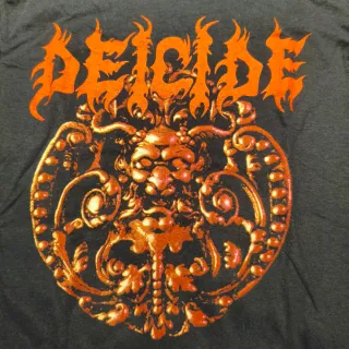 Camiseta negra con estampado de la banda Deicide. - Diseño frontal con el logo y un ornamento. - Manga corta.