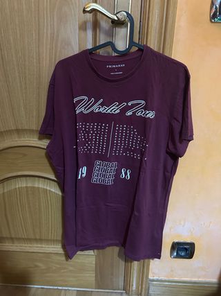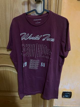 Camiseta color granate de world tour de Primark con logo en la parte delantera talla l en buen estado