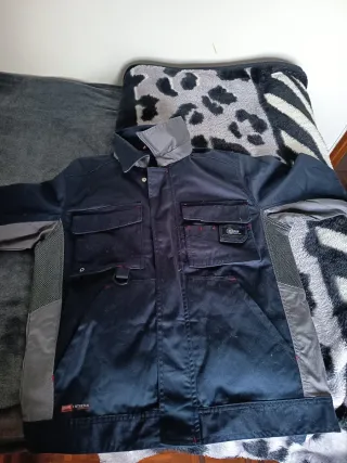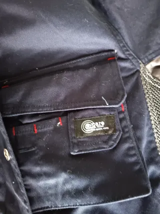 Camiseta de trabajo de color azul. - Tejido resistente. - Bolsillo en el pecho con etiqueta. - Costuras rojas decorativas.