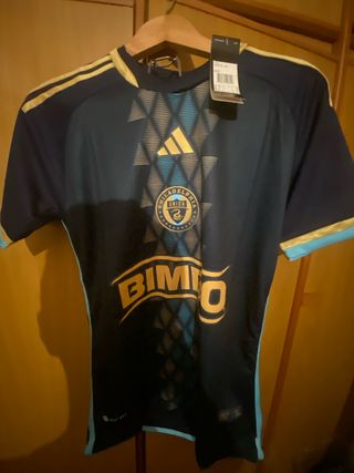 Camiseta de fútbol del Philadelphia Union, marca Adidas. No hago envíos. - Diseño con detalles en dorado y azul. - Escudo del equipo en el pecho. - Logo de Adidas. - Patrocinador Bimbo. - Talla M