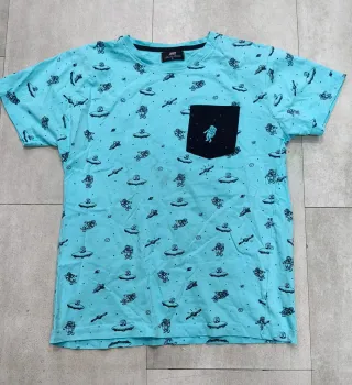 Camiseta de manga corta para hombre. - Cuello redondo. - Estampado gráfico en el pecho. - Logo de la marca en la etiqueta. La compré hace 1 mes o asi pero me queda pequeña usada 2-3 veces