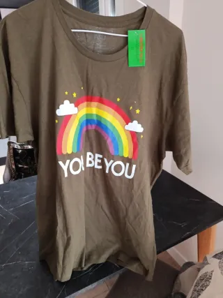 Camiseta de manga corta con un diseño de arcoíris y el lema YOU BE YOU. - Estampado frontal. - Cuello redondo.