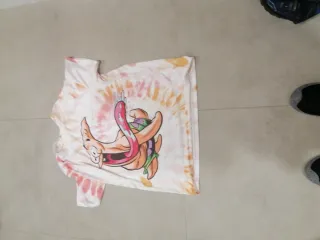 Camiseta con un llamativo diseño tie-dye en tonos rosas y blancos. Presenta un estampado gráfico en el frontal con temática de Patricio, perfecto para el día a dia - Diseño tie-dye. - Estampado gráfico.