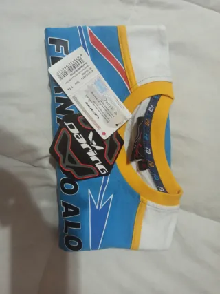 Camiseta oficial de Fernando Alonso de la marca Daring. - Diseño con detalles en azul, blanco y amarillo. - Talla T.14.