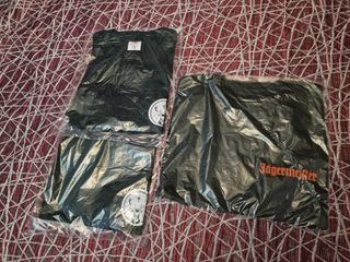 Camisetas Jägermeister originales precintadas. Hay 2 modelos diferentes: • Modelo 1: Logo de Jägermeister en blanco en la parte frontal. • Modelo 2: Nombre Jägermeister en color naranja, en pequeño en la parte frontal y en grande en la parte trasera. 💰 Precio: 12 € por unidad 💬 Pregunta sin compromiso.