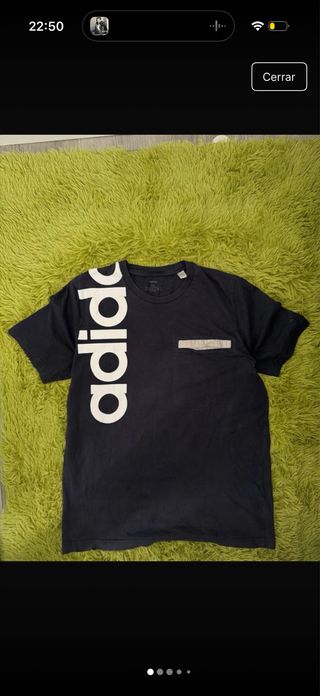 Camiseta de manga corta de la marca Adidas. Presenta un diseño con el logo de la marca en el pecho. - Logo de Adidas en el pecho.