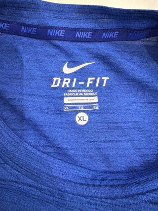 Camiseta deportiva Nike Dri-Fit en color azul. Perfecta para entrenamientos. - Tejido técnico transpirable. - Diseño con líneas finas.