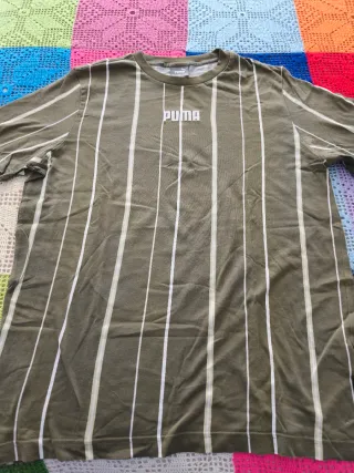 Camiseta de chico con un diseño de rayas verticales. - Logo de Puma en el pecho. - Cuello redondo. - Manga corta.