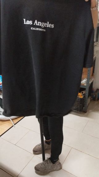 Vendo camiseta negra con estampado “Los Angeles California”, traída directamente desde… bueno, no desde Los Ángeles, pero esta cerca. ✔️ Color negro elegante (combina con todo, incluso con mi compi Patri). ✔️ Corte amplio estilo oversize: ideal para ir cómoda, para dormir, para trabajar, para salir o para fingir que vives en California. Ha sido testigo de momentos importantes como: – escaqueos pa fumar – tiradas de basura -limpiezas de baños Estado: Perfecto. Solo ha absorbido olores Talla: Amplia, perfecta para esconder secretos. Precio: 7.500 € (negociables si vienes desde Los Ángeles en patinete eléctrico). No cambio por sexo.