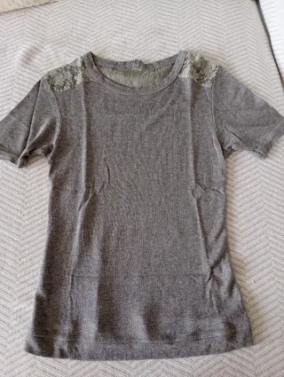 Camiseta de punto con detalles de encaje en los hombros y espalda. - Tejido principal de punto. - Inserciones de encaje en la zona de los hombros y la espalda. - Diseño de manga corta. - No hago envíos por menos de 5€.