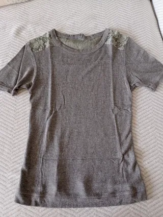 Camiseta punto y encaje gris