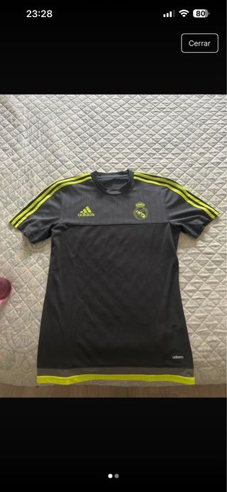 Camiseta oficial del Real Madrid para la temporada 2024/2025. La vendo porque me quiero comprar la nueva fue un regalo y no tengo ticket - Diseño clásico en blanco con detalles negros. - Tecnología Aeroready para mayor transpirabilidad. - Escudo del club bordado en el pecho.