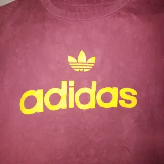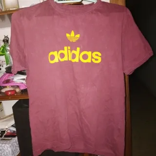 Camiseta de manga corta en color vino tinto. Talla S. Ver medida en las fotos. Con letras de marca Adidas Estado: Nueva Composición: 100% algodón. (Última foto) Precio: 10€