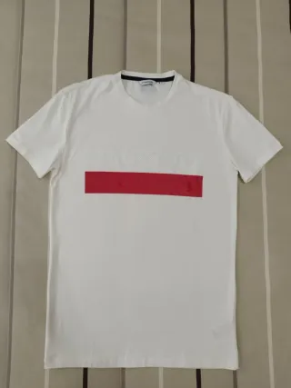 Camiseta original con un diseño moderno y exclusivo, con corte fit de alta calidad. Detalle de raya horizontal en color rojo.