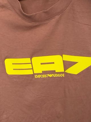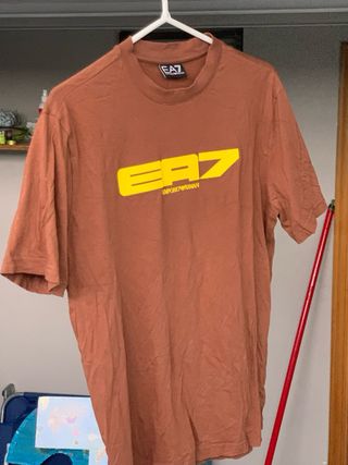 Camiseta deportiva EA7 con un diseño moderno y detalles en dorado. - Cuello redondo. - Mangas cortas. - Estampado gráfico en hombros y pecho.