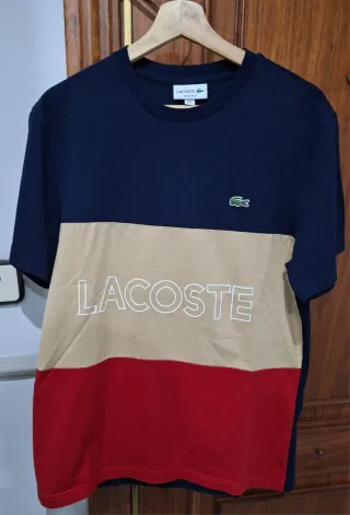 Camiseta Lacoste en perfecto estado, sin desgaste, sin manchas, ni ninguna rotura. Muy combinable y cómoda.