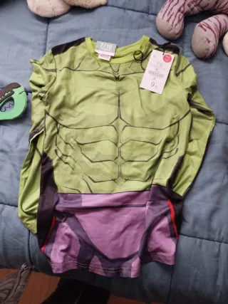 Disfraz de Hulk para niño, incluye camiseta y máscara. - Talla 7-10 años. - Diseño inspirado en el personaje. - Máscara de fieltro verde.
