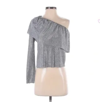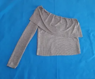 Blusa corta de hombro descubierto #croptop #blusa #plateado #mujer #ropamujer #xs #gris
