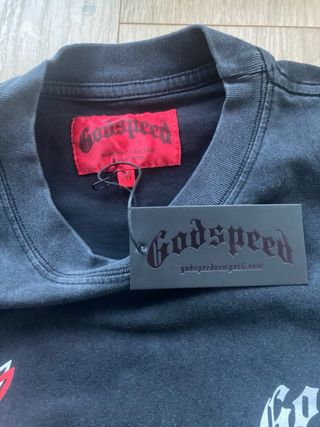Camiseta negra con diseño gráfico. !!!ABIERTO A DISCUTIR EL PRECIO!!! - Logo de Godspeed en blanco. - Detalle gráfico en el pecho izquierdo y en espalda
