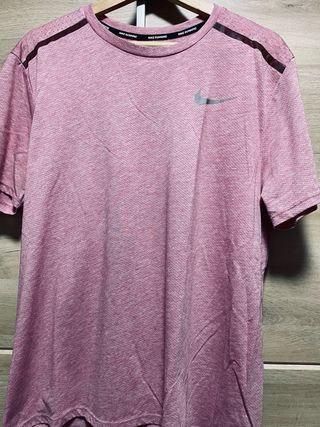 Lote de tres camisetas deportivas Nike para running. Son de color rosa y talla L. La naranja es talla M - Tejido técnico transpirable. - Diseño deportivo. - Ideales para entrenamientos.