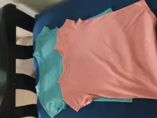 Conjunto de dos camisetas básicas para mujer. - Camiseta de color rosa. - Camiseta de color turquesa.