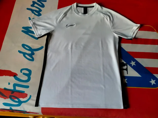 Camiseta deportiva de manga corta con cuello en V. - Tejido blanco con detalles en azul marino. - Logo de Nike en el pecho. - Tecnología Nike Fit.