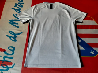 Camiseta oficial del Paris Saint Germain. Talla: 12-13 años. - Diseño con franjas verticales en el frontal. - Logo del club y marca deportiva bordados. - Inscripción ICI C'EST PARIS en el cuello. - Está impoluta.