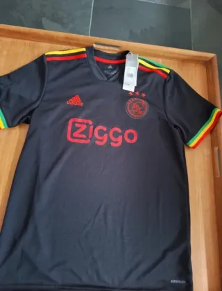 Camiseta del Ajax con diseño inspirado en Bob Marley. Talla XL. - Detalles de colores en cuello y mangas. - Logo de Adidas y escudo del Ajax. - Patrocinador Ziggo en el frontal.