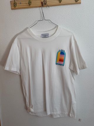 Camiseta blanca con un diseño gráfico frontal de Casa Blanca. - Diseño con arcoíris y degradado. - Estampado de texto CASA BLANCA.