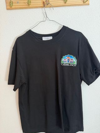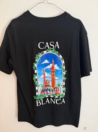Camiseta negra con un diseño gráfico de Casa Blanca. - Estampado frontal con paisaje arquitectónico. - Cuello redondo. - Manga corta.