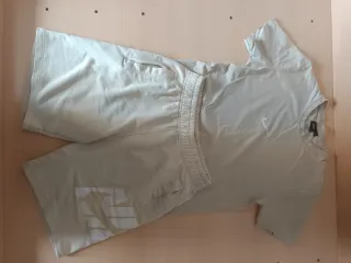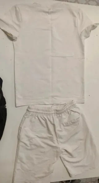 Conjunto deportivo de hombre. - Camiseta de manga corta con logo. - Pantalón corto con cintura elástica y bolsillos. -Tiene dos manchas que no se pueden quitar