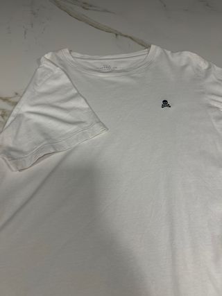 Camiseta básica de manga corta con un pequeño detalle bordado. - Cuello redondo. - Diseño minimalista con calavera bordada en el pecho.