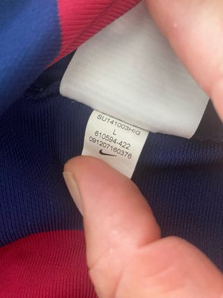 Camiseta de fútbol del FC Barcelona de la temporada 2014-15, con el dorsal de Messi. - Diseño a rayas rojas y azules. - Logo de Qatar Airways en el frontal. - Parche de la Champions League en la manga izquierda. - Insignia de 'Respect' en la manga derecha. - Tecnología Dri-FIT.