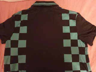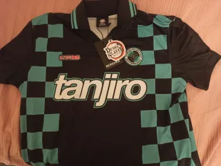 Camiseta deportiva inspirada en Demon Slayer. - Diseño a cuadros en negro y verde azulado. - Estampado tanjiro en el frontal. - Logo de Demon Slayer y Bershka en etiqueta.