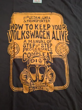 Camiseta con diseño gráfico de Volkswagen. - Estampado frontal How to Keep Your Volkswagen Alive. - Ilustración de un Volkswagen Transporter y un motor.