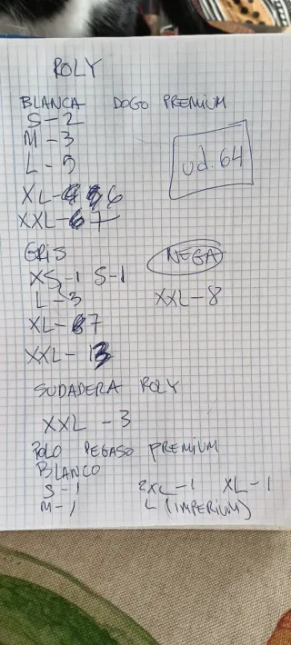 Lote de prendas de vestir nuevas, incluyendo camisetas, polos y sudaderas. 64 unidades en total 4 polos blancos 3 sudaderas XXL gris 57 camisetas variadas - Tallas disponibles: variedad - Colores: gris, blanco y negro.