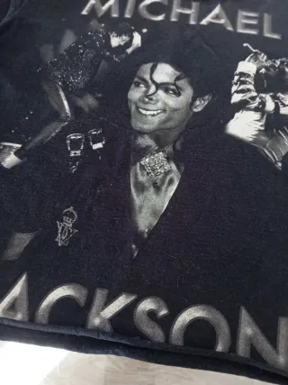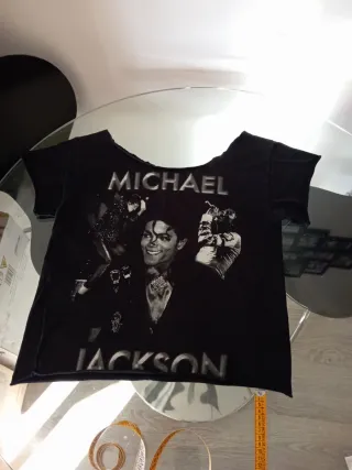 Camiseta con estampado de Michael Jackson. El cuello está cortado - Diseño frontal con imágenes del artista. - Cuello abierto. - Manga corta.