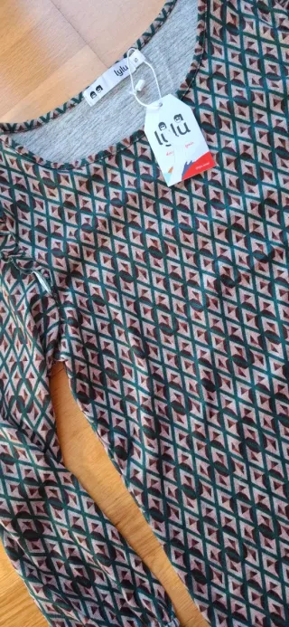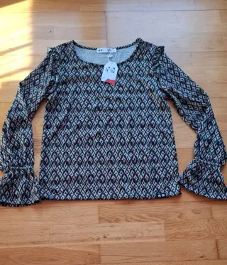 Camiseta de chica con un bonito estampado. - Diseño de rombos en varios tonos. - Mangas largas con volantes en los puños. - Volantes en los hombros.
