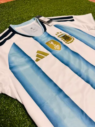 Camiseta de la selección argentina de fútbol. - Diseño con franjas verticales celestes y blancas. - Detalles en azul marino en cuello y mangas. - Logo de Adidas y escudo de la AFA bordados. - Tecnología HEAT.RDY para máxima transpiración.