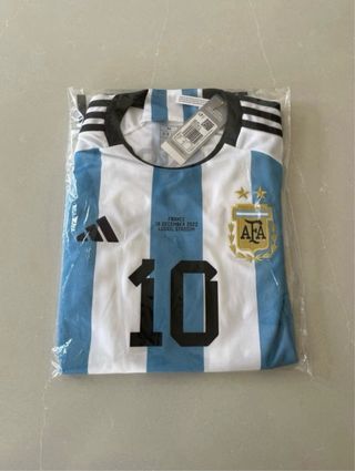 Camiseta de la Selección Argentina, edición especial de la final del Mundial 2022. - Diseño conmemorativo de la final contra Francia. - Detalles del partido: 18 Diciembre 2022, Estadio Lusail. - Número 10 icónico de Messi