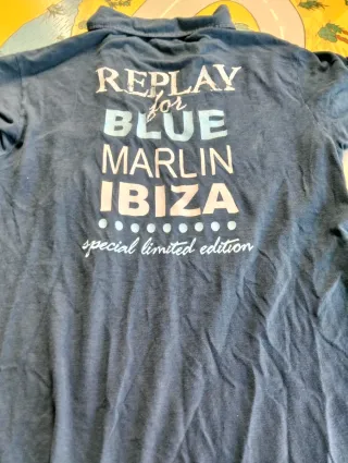 Camiseta de la marca Replay con un diseño especial. Talla l/m - Estampado Blue Marlin Ibiza. - Edición special limited edition.