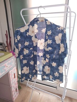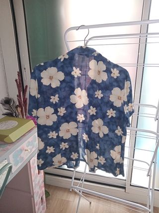 Camisa de manga corta con un bonito estampado floral. -NO ACEPTO BIZUM NI PAGOS POR WALLAPOP SOLO EFECTIVO ENTREGA EN PERSONA GRACIAS - Diseño con flores blancas sobre fondo azul. - Cuello camisero. - Dos bolsillos en la parte delantera.